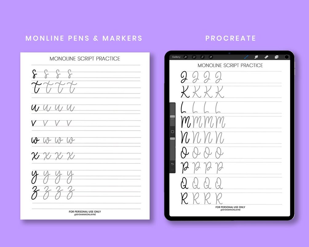 Monoline Lettering Worksheets